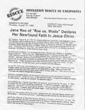 Jane Roe of "Roe vs. Wade" Declares