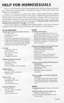 However, we want you to know that while we fight against the gay political movement, as a Christian ministry we have great compassion for the thousands of homosexuals who recognize their sin and want to change. That's why we have promoted the ministry of ex-gay Michael Johnston and why we try to take every opportunity to commend the work of groups like Homosexuals Anonymous, Exodus International, Courage, and others.