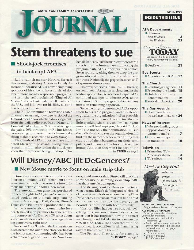 Gary Bauer's American Renewal ran full-page ads in papers in Portland and Bangor, which read in part: "Minority classifications have been generally defined to give special protection only to those who can prove three things: unchangeable characteristics, proof of widespread discrimination and political powerlessness. Anything else is bogus."
